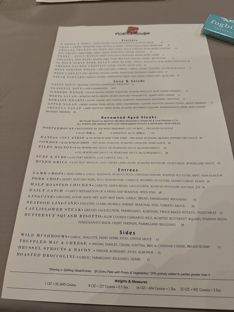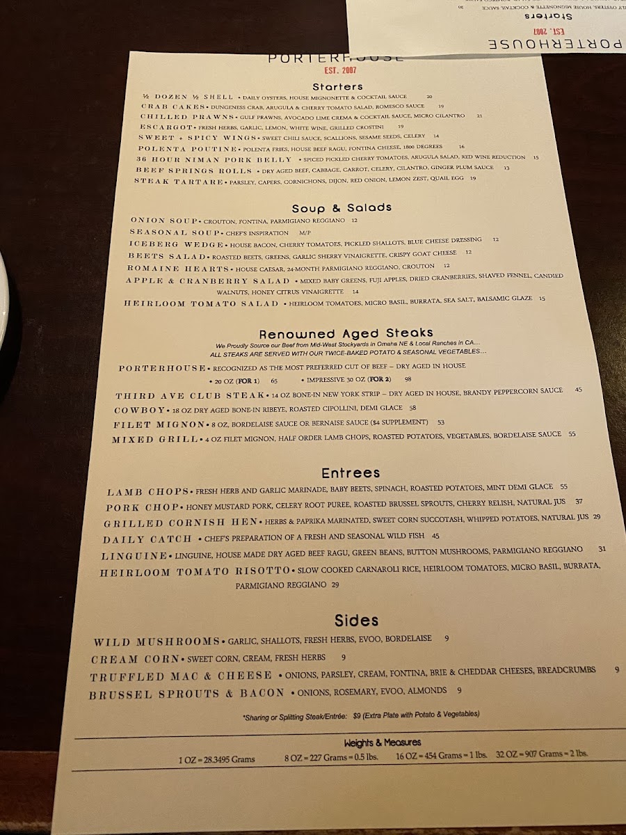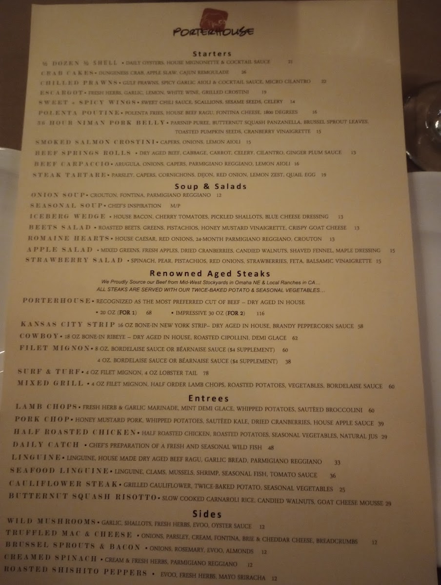 Introducing the Menu at Porterhouse